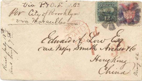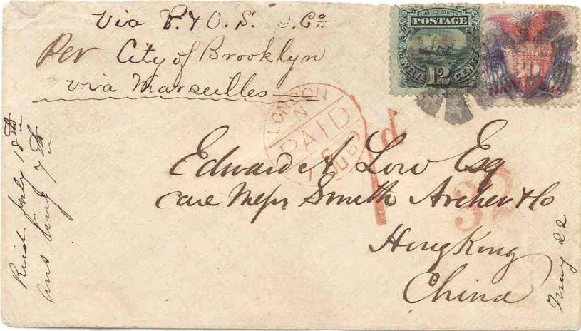 22 May 1869 used with 12c on cover to Hong Kong the earliest reported usage of the 30c
